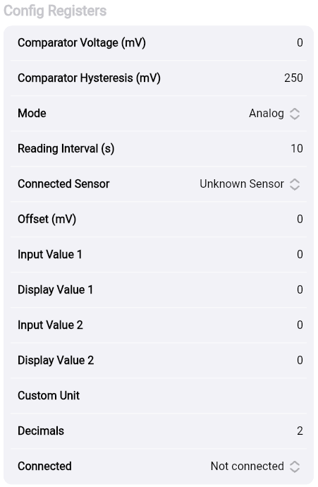 - “Value” - Itt található meg, hogy mekkora feszültséget mér a bemeneten az eszköz mV-ban kifejezve.