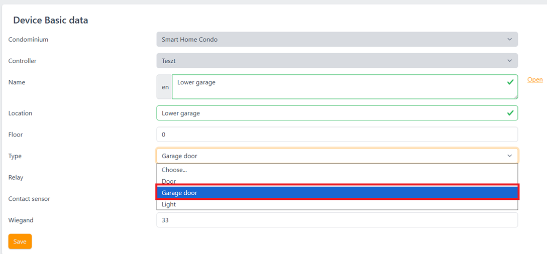 Hozzunk létre egy új ajtót, és a Type legördülő menüből válasszuk a „Garage door” opciót.