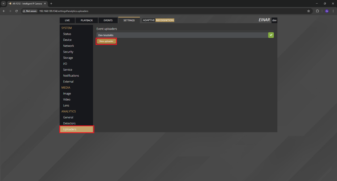 Nyissuk meg a Uploaders menüt, és kattintsunk a „New Uploader” gombra.