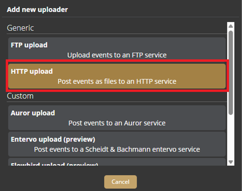 A felugró ablakban válasszuk ki a „HTTP upload” lehetőséget.