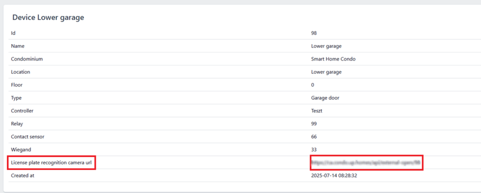 Másoljuk ki a megjelenő „License Plate Recognition Camera URL” értéket. A treshold=x értékben meg lehet adni, hogy az adott kamera, milyen biztonsággal küldje felénk az olvasott értékeket.